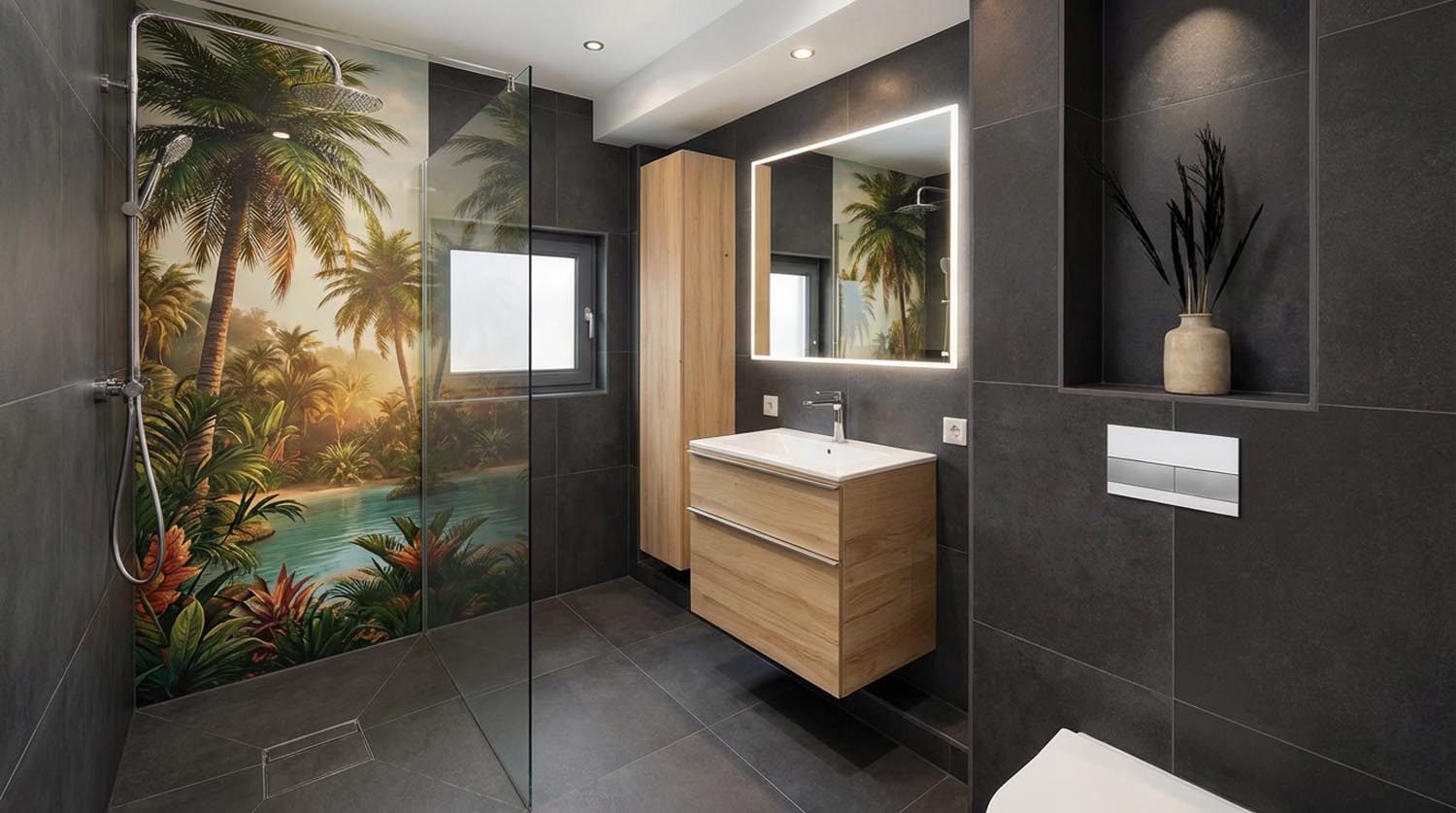 „Das neue Badezimmer mit dem Duschwandmotiv verändert den ganzen Raum. Die Naturszene schafft Ruhe und gibt dem Bad eine besondere Tiefe. Die Planung war durchdacht. Die Ausführung präzise. Jetzt haben wir ein Badezimmer, das im Alltag Freude macht und zugleich elegant wirkt.“