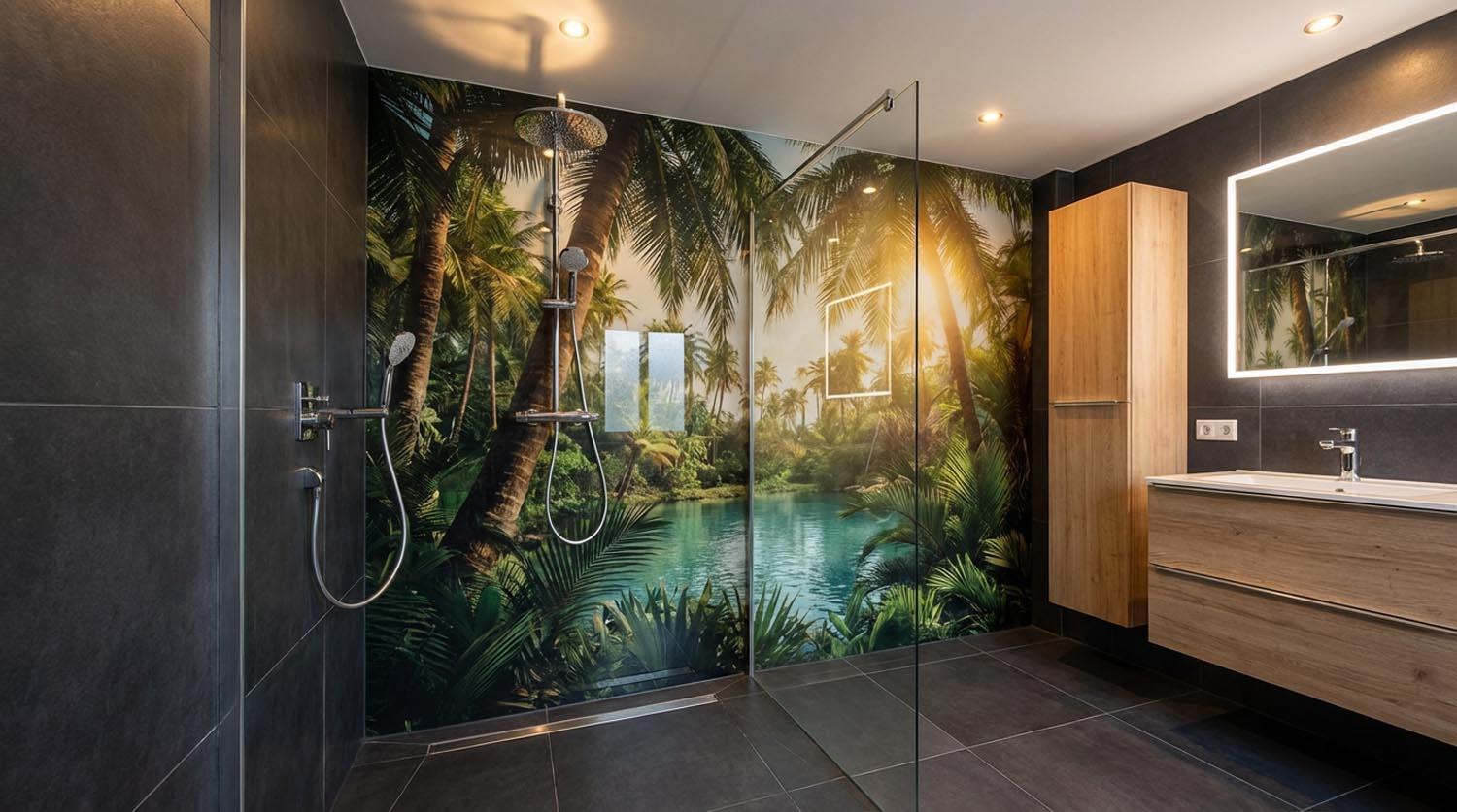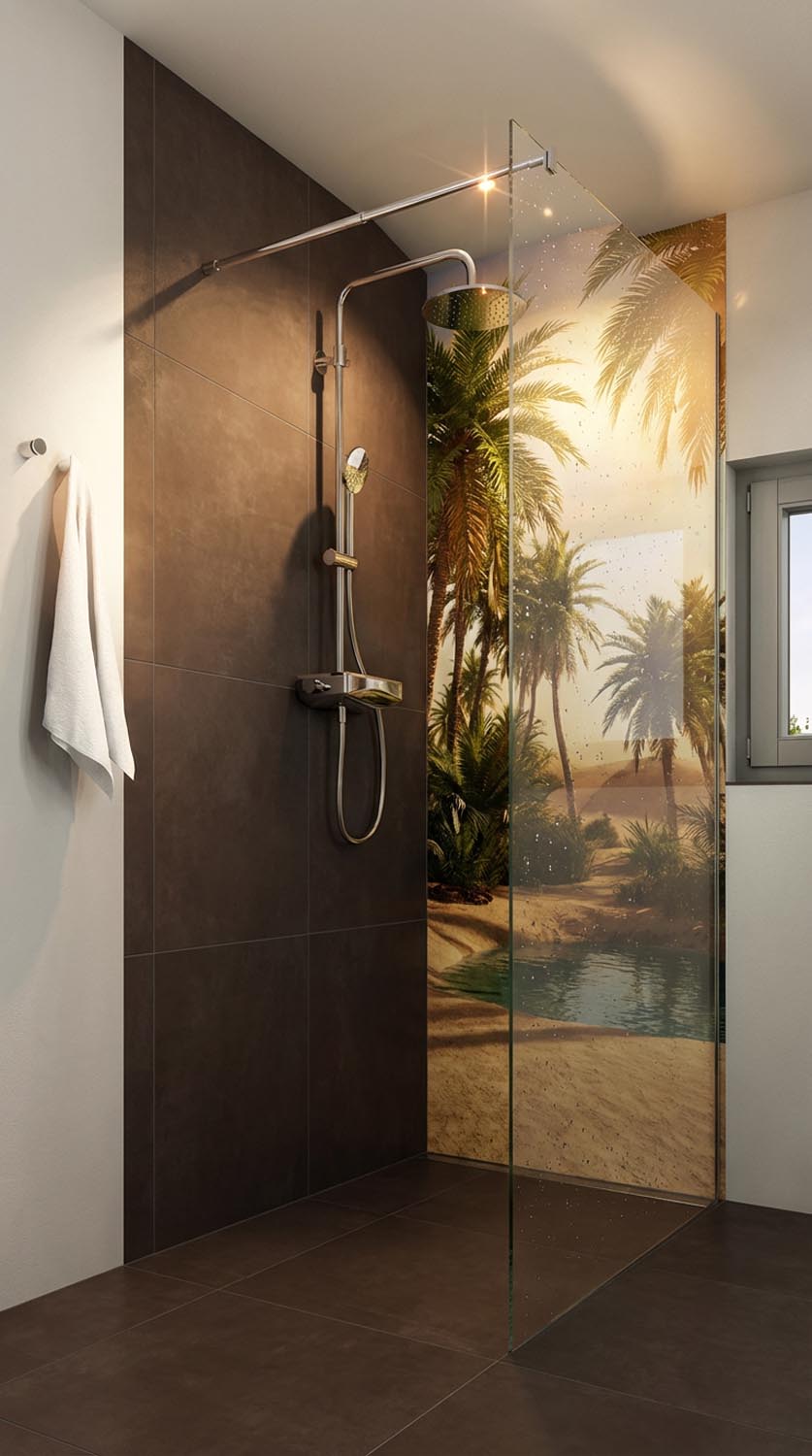 Naturmotiv in der Dusche als individueller Blickfang